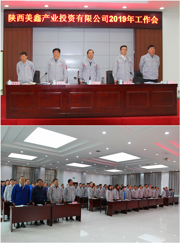 追趕超越奮進(jìn)新時(shí)代,擔(dān)當(dāng)實(shí)干展現(xiàn)新作為。4月3日上午,公司在二樓會(huì)議室召開(kāi)了2019年工作會(huì)。會(huì)議深入學(xué)習(xí)貫徹了黨的十九大精神和集團(tuán)公司工作會(huì)精神,回顧總結(jié)2018年主要工作,安排部署2019年重點(diǎn)工作,為今年奮力前行統(tǒng)一思想、凝集共識(shí)、指明方向。公司領(lǐng)導(dǎo)班子成員,機(jī)關(guān)全體人員,各基層單位負(fù)責(zé)人,職工代表、監(jiān)理單位、設(shè)計(jì)單位、施工單位代表等,共計(jì)150余人參加了會(huì)議。會(huì)議由黨委副書(shū)記、紀(jì)委書(shū)記李書(shū)平主持。 黨委委員、副總經(jīng)理、總工程師元?jiǎng)倮髁祟}為《精心部署 真抓實(shí)干 — 全面開(kāi)創(chuàng)公司高質(zhì)量高效益發(fā)展新局面》的工作報(bào)告。2018年,陜西美鑫公司全面貫徹十九大和習(xí)近平總書(shū)記系列重要講話精神及中央、省和集團(tuán)公司決策部署,在集團(tuán)公司的正確領(lǐng)導(dǎo)下,在各級(jí)政府大力支持下,緊緊圍繞全年目標(biāo)任務(wù),以破解發(fā)展不平衡不充分問(wèn)題為導(dǎo)向,全力推進(jìn)各個(gè)項(xiàng)目施工建設(shè),狠抓生產(chǎn)經(jīng)營(yíng)各項(xiàng)工作,安全、環(huán)保和穩(wěn)定工作平穩(wěn)發(fā)展,黨的建設(shè)得到全面加強(qiáng)。 全體人員奏唱《國(guó)歌》