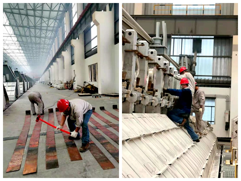 驕陽似火,熱浪如涌,持續(xù)高溫的日子肆虐著。在這樣的“桑拿天”里,鋁鎂合金檢修車間職工戰(zhàn)高溫、斗酷暑,從大局出發(fā),任勞任怨,用辛勤的汗水譜寫出一曲奉獻者之歌。 7月24日以來,為減輕電解生產(chǎn)壓力,齊心協(xié)力完成第二階段電解槽啟動投運任務(wù),檢修車間在自身檢修任務(wù)繁重、人員緊張的情況下,主動請纓,動員發(fā)動內(nèi)部力量,主動承擔起電解車間分流器、軟連接的安裝任務(wù)。 7月24日當天,檢修車間立刻行動起來。車間主任鄭云峰主持召開動員大會,號召車間全體職工凝聚力量,克服一切困難,以飽滿的工作熱情投入到電解槽啟動投運攻堅戰(zhàn)中。當天晚上,通過抽調(diào)加班方式,安裝人員按時上崗。 七月流火,熱浪滾滾,但檢修車間職工的工作熱情比氣溫還高。一個軟連接重達50多斤,一個人扛上肩,而后爬上幾米高的電解槽安裝,難度可想而知!問題不止于此,每個電解槽需要安裝48個軟連接,每安裝一個電解槽,這樣的動作就要重復(fù)48次。汗水不停地流下來,很快就濕透了工裝。為確保工作進度、減輕工作強度,安裝采取分組方式,輪番上陣。職工們放棄雙休日,加班加點工作。輕度中暑時常發(fā)生,一支藿香正氣水下肚后又沖了上去。揮汗如雨的職工,用實際行動詮釋著美鑫職工愛崗敬業(yè)的錚錚誓言,用汗水共譜努力、團結(jié)、共戰(zhàn)高溫的主旋律。