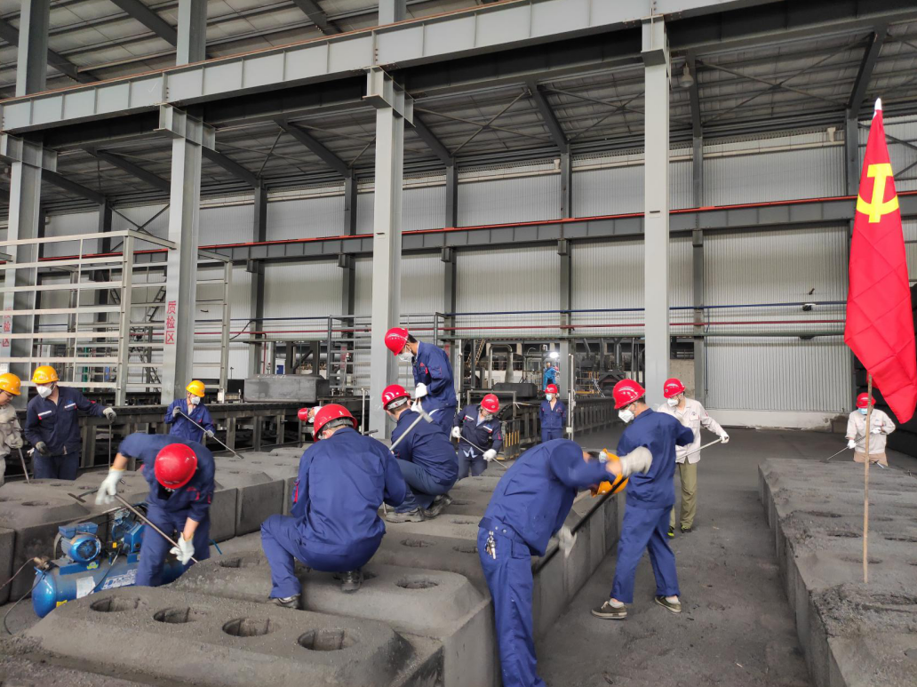 為充分發(fā)揮黨員先鋒模范作用,弘揚(yáng)奉獻(xiàn)精神,近日,陽(yáng)極分公司為解決焙燒陽(yáng)極熟塊填充料粘結(jié)嚴(yán)重、外觀清理速度慢、影響生產(chǎn)進(jìn)度的問(wèn)題,陽(yáng)極分公司黨總支結(jié)合生產(chǎn)實(shí)際,組織開(kāi)展了陽(yáng)極熟塊清焦義務(wù)勞動(dòng)主題黨日活動(dòng)。活動(dòng)自從7月21日至24日歷時(shí)四天,共計(jì)102名黨員干部、管理人員參與了此次活動(dòng)。 活動(dòng)中,各支部黨員職工積極踴躍、爭(zhēng)先恐后,按照分工任務(wù)計(jì)劃和清焦要求,大家分工協(xié)作、相互配合,對(duì)陽(yáng)極熟塊表面粘接的焦粒及炭碗進(jìn)行了清理,勞動(dòng)現(xiàn)場(chǎng)熱火朝天,一片繁忙。經(jīng)過(guò)四天的奮戰(zhàn),共清理陽(yáng)極熟塊208塊,極大的緩解了焙燒塊清焦難題,有效保障焙燒車間生產(chǎn)速度和任務(wù)量。 通過(guò)此次活動(dòng)的開(kāi)展,充分發(fā)揮了廣大黨員勇于擔(dān)當(dāng)、甘于奉獻(xiàn)的精神,進(jìn)一步增強(qiáng)了黨組織的凝聚力和戰(zhàn)斗力,展示了陽(yáng)極分公司黨員職工團(tuán)結(jié)一致的良好風(fēng)貌。 |