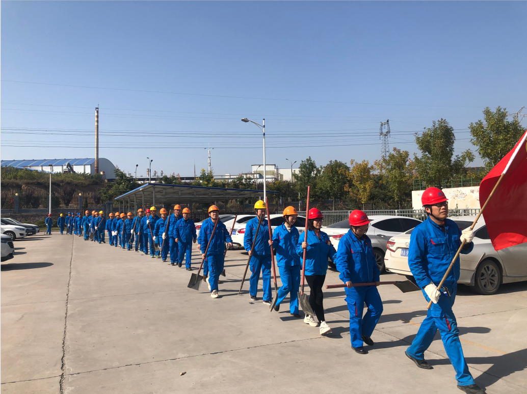 今年以來,由于雨水天氣較多,位于廠區(qū)內(nèi)工業(yè)消防廢水池頂部雜草眾生,不僅影響廠區(qū)美化環(huán)境,還會引發(fā)火災(zāi)等安全隱患。為有效發(fā)揮黨員的先鋒模范作用,10月23日下午,錦陽電廠黨總支開展“清雜草、助文明”主題黨日活動,組織電廠黨員干部、積極分子及團(tuán)員共計37人,對工業(yè)消防水池頂部雜草進(jìn)行清理。 活動開始前,電廠黨總支副書記劉銀玲就此次主題黨日活動開展提出要求。她指出,此次主題黨日活動是不僅僅是錦陽電廠精神文明單位創(chuàng)建工作的需要,也是美化廠區(qū)環(huán)境、提升形象,消除安全隱患,豐富主題黨日活動的內(nèi)容與載體。希望各黨員用自己的實際行動發(fā)揮好共產(chǎn)黨員的先鋒模范作用和黨組織的戰(zhàn)斗堡壘作用,為電廠各項事業(yè)順利推進(jìn)貢獻(xiàn)自己的力量。 隨后,大家排成縱隊,整齊劃一,拿著工具,前往勞動地點。 大家以小組為單位分片包干,有的揮鐵鍬,有的掄鐮刀,有的拔草,有的對雜草進(jìn)行裝袋整理......有條不紊、干勁十足、團(tuán)結(jié)協(xié)作,每個人的臉上都露出了滿足的笑容。 經(jīng)過近一個小時的辛勤勞動,工業(yè)消防水池頂部雜草被清除干凈,廠區(qū)面貌煥然一新。 |