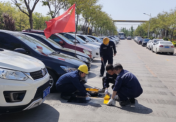 陽(yáng)極分公司原有車位經(jīng)過長(zhǎng)期雨水沖刷和車輛碾壓,多數(shù)車位線已模糊不清,車輛騎線壓線停放現(xiàn)象時(shí)有發(fā)生,給職工停車造成很大困擾,也存在安全隱患。為消除隱患,加強(qiáng)分公司車輛安全管理,4月20日,陽(yáng)極分公司團(tuán)總支積極組織團(tuán)員青年開展“車位畫線防隱患,規(guī)范停車你我有責(zé)”主題團(tuán)日活動(dòng)。此次車位畫線以節(jié)約人力物力為原則,在原車位底線基礎(chǔ)上進(jìn)行補(bǔ)充加深,同時(shí),考慮到畫線過程中模具由于反復(fù)使用,油漆會(huì)沿著模具邊沿流入底部,影響畫線效果,團(tuán)總支提前準(zhǔn)備了兩套T型、L型橡膠模具交替使用,確保工作質(zhì)量和進(jìn)度。一大早,團(tuán)員青年們就提著油漆,帶著工具來(lái)到指定地點(diǎn),四人為一組,一人清掃,一人刷漆,兩人搬移模具,大家很快就畫完了計(jì)劃區(qū)域內(nèi)車位線,并在車輛入口拉上警戒線,待油漆干后便立即投入使用。分公司停車場(chǎng)現(xiàn)有車位222個(gè),目前,部分車位已畫線完畢,分公司團(tuán)總支后期將根據(jù)天氣情況,及時(shí)組織團(tuán)員青年對(duì)剩余車位線進(jìn)行補(bǔ)畫,為分公司廠區(qū)車輛安全管理貢獻(xiàn)團(tuán)青力量。 |
