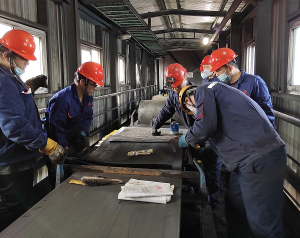 近期,陽極分公司煅燒車間當(dāng)班原料工在巡檢過程中發(fā)現(xiàn),煅燒爐上料膠帶輸送機(jī)皮帶磨損開裂現(xiàn)象較為嚴(yán)重,由于上料線是單線運(yùn)行,一旦運(yùn)輸皮帶斷裂,會直接引起煅燒爐供料不足,導(dǎo)致停產(chǎn),后果非常嚴(yán)重。 車間得知情況后高度重視,立即組織技術(shù)骨干、維修人員討論研究處理方案,因只是局部磨損,為節(jié)約成本,最終決定對磨損較為嚴(yán)重的長約12米皮帶進(jìn)行裁剪后硫化粘接處理。時間緊、任務(wù)重,在實施過程中,維修人員嚴(yán)格按照方案要求,分工明確,各司其職,交替作業(yè),但膠帶硫化處理工藝在車間運(yùn)用還不夠成熟,面對遇到的臨時性難題,作業(yè)人員積極查閱技術(shù)資料,虛心請教設(shè)備廠家,及時高效的解決了粘接過程中的技術(shù)瓶頸問題。經(jīng)過8個多小時不間斷搶修,終于在當(dāng)天大夜班交接前完成了皮帶裁剪及硫化粘接工作,通過試運(yùn)行觀察,皮帶運(yùn)行狀態(tài)良好,搶修工作圓滿完成。 此次搶修工作,充分檢驗了車間應(yīng)急處置水平和實戰(zhàn)搶修能力,在強(qiáng)化了全員應(yīng)急管理的同時,對今后應(yīng)對和處置各類突發(fā)問題起到了積極地指導(dǎo)作用,為分公司煅后焦供給和外銷任務(wù)的順利完成提供了堅實保障。 |
