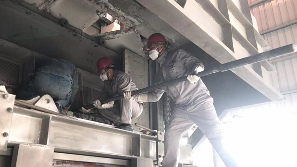 鋁鎂合金分公司檢修車間檢修二班承擔(dān)著鋁鎂合金供料車間、鑄造車間、電解槽控系統(tǒng)大小設(shè)備的維護(hù)、檢修任務(wù)。連續(xù)高溫天氣的“炙熱模式”使車間的鋼筋廠房變成了“大蒸爐”。在這樣的條件下,要確保每臺(tái)設(shè)備良好運(yùn)行,就更得細(xì)化工作、強(qiáng)化責(zé)任,緊繃“安全弦”。 8月31日下午4:50分,在大家即將結(jié)束忙碌了一天的工作準(zhǔn)備交接班時(shí),檢修二班接到在崗職工延遲下班的通知。由于2號(hào)混合爐爐溫低于650攝氏度,經(jīng)現(xiàn)場(chǎng)確認(rèn)需要進(jìn)行硅碳棒更換作業(yè),只見(jiàn)他們熟練的整理工器具、穿戴勞保,迅速趕到現(xiàn)場(chǎng)與鑄造工密切配合,斷電、拉警戒線、搭建工作平臺(tái)……他們?cè)趬|著木板的爐門(mén)排煙罩內(nèi)工作了近三個(gè)小時(shí),將一根根硅碳棒用5米的角鐵架送入爐膛,汗水浸濕了他們的全身,油污沾滿了他們的雙手,廠房周圍的設(shè)備轟鳴聲干擾不到他們,爐里散發(fā)的滾滾熱浪趕不走他們,因?yàn)樗麄?/span>心中有著無(wú)限力量。 高溫下⼀幕幕忙碌的身影讓我肅然起敬,這就是三伏天維修工的日常縮影,他們揮汗如雨,堅(jiān)守崗位,不言退縮,在自己平凡的崗位上接受著高溫的考驗(yàn)和洗禮,為車間的安全運(yùn)轉(zhuǎn)保駕護(hù)航,用汗水和智慧詮釋著愛(ài)崗敬業(yè)的責(zé)任與擔(dān)當(dāng)。 |