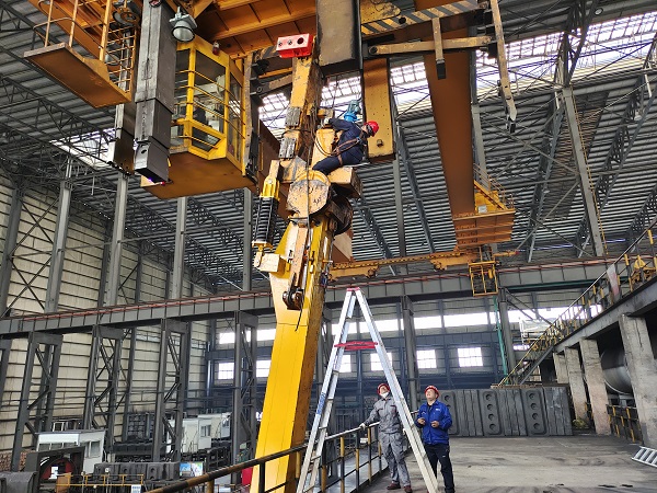 陽(yáng)極分公司焙燒多功能天車是焙燒爐裝出陽(yáng)極塊的主要設(shè)備,隨著使用年限的增加,天車夾具各機(jī)構(gòu)出現(xiàn)磨損變形情況,致使天車存在散爪安全隱患。 針對(duì)此項(xiàng)隱患,分公司高度重視,成立由設(shè)備管理部牽頭、焙燒車間專業(yè)技術(shù)人員配合的攻關(guān)小組,通過對(duì)天車夾具主要機(jī)構(gòu)磨損老化程度分析研判,明確故障原因及解決方案。設(shè)備管理部積極協(xié)調(diào),快速完成定制備件的采購(gòu)供貨任務(wù),并聯(lián)系對(duì)接廠家專業(yè)技術(shù)人員現(xiàn)場(chǎng)指導(dǎo)。焙燒車間檢修技術(shù)人員協(xié)同配合,對(duì)天車夾具、中間拉桿、開啟機(jī)構(gòu)等設(shè)備進(jìn)行矯正修復(fù)更換。經(jīng)歷5天的拆除、修整、裝配及反復(fù)調(diào)試,于10月24日順利完成了#1多功能天車#2夾具的大修工作。 大修后的多功能天車夾具運(yùn)行平穩(wěn)、機(jī)構(gòu)動(dòng)作順暢可靠,有效提升了設(shè)備本質(zhì)安全性能,保證了自用極和代焙塊的裝出爐工作,也為分公司今后自主完成大型設(shè)備的安裝調(diào)試積累了豐富經(jīng)驗(yàn)。 |