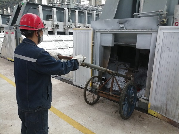 在500KA大型電解槽的前后兩端分別各有一個直徑約35-40公分的圓形洞口,主要用于鋁液吸出、炭渣打撈、物料添加、效應(yīng)熄滅、爐底勾帶等日常作業(yè),但是由于電解質(zhì)溶液的不斷凝固,需要定期對前后端洞口進行擴展維護。 日常作業(yè)時,作業(yè)人員需要使用手動風(fēng)鎬進行擴孔作業(yè),不但勞動強度大,而且需要長時間近距離貼近開孔處,存在一定的安全隱患。為消除隱患提高效率,在鋁鎂合金分公司電解一車間技術(shù)革新小組積極攻關(guān)下,一輛高效、簡便,可實現(xiàn)遠距離操控的兩端頭開孔車于近日投入使用。該開孔車采用自行方式及杠桿原理,將手動風(fēng)鎬固定在開孔車前端,人工開孔距離擴展至2米外,既保證了風(fēng)鎬開孔力度和擴孔質(zhì)量,又減少了高溫輻射,勞動強度大幅度降低,開孔速度較以前也提高了3倍以上。 兩端頭開孔車的投入使用,是2024年電解一車間技術(shù)革新的首例成果,后續(xù),電解一車間技術(shù)革新小組將持續(xù)發(fā)揚工匠精神和創(chuàng)新精神,讓更多創(chuàng)新成果轉(zhuǎn)化為現(xiàn)實生產(chǎn)力。 |
