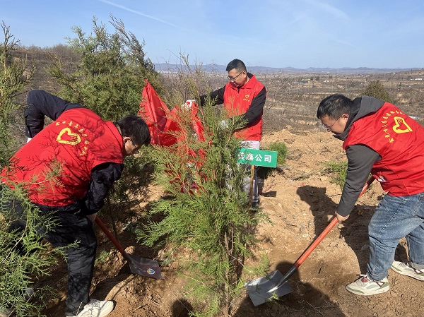 春風(fēng)吹新綠,植樹正當(dāng)時(shí)。在全國第46個(gè)植樹節(jié)到來之際,公司積極開展“依法盡責(zé)植樹 共享森林銅川”植樹活動,進(jìn)一步提升公司廣大干部職工綠色發(fā)展意識和環(huán)境保護(hù)意識,以實(shí)際行動傳遞綠色力量、走好綠色之路。此次活動由后勤服務(wù)中心牽頭組織,公司廣大團(tuán)員青年志愿者積極參與。 3月12日一大早,大家身穿紅馬甲,拿起工具,全副武裝前往印臺區(qū)史家河“曙光林栽植點(diǎn)”。在植樹現(xiàn)場,大家緊密配合、分工協(xié)作,揮锨鏟土、定點(diǎn)挖坑、放苗回填、澆水培植,每個(gè)環(huán)節(jié)都井然有序。此次活動計(jì)劃栽種柏樹苗500余株。當(dāng)日新栽種的樹苗在春日下迎風(fēng)挺立,為初春的大地增添了一分生機(jī)。 通過活動,進(jìn)一步增強(qiáng)了廣大干部職工的生態(tài)意識、環(huán)保意識、文明意識。大家紛紛表示,在今后的工作生活中將牢固樹立“綠水青山就是金山銀山”理念,持續(xù)開展綠色環(huán);顒樱瑺幾錾鷳B(tài)文明的踐行者、倡導(dǎo)者和推動者。 |