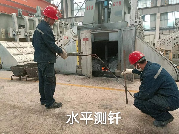 鋁鎂合金分公司電解二車間前期在電解生產(chǎn)過程中測量電解質(zhì)和鋁水平時,使用的是120°水平測釬,操作時需同時拿測釬和直水平尺,增加操作人員工作量的同時也不易操作。 近期電解二車間黨支部創(chuàng)新小組經(jīng)過試驗改進,將水平測釬改進為角度測釬,測釬后把使用長120㎝、直徑22mm的不銹鋼圓管,測釬前部為直徑18mm、長度75㎝的實心鋼筋,測釬總重量由原先的5.2kg下降為2.7kg,測釬彎曲角度由60°變?yōu)?/font>25°,磁力影響寬度也由原來的120㎝下降為30㎝。此外還可以加裝固定快捷角度儀,測量時角度儀卡在測釬后把上,測量時不僅準確而且方便。 改進后的角度測釬重量減輕,磁力影響寬度、彎曲角度減小,不需要同時拿測釬和直水平尺,經(jīng)過工區(qū)多次試驗使用效果良好,得到大家一致好評,現(xiàn)已在工區(qū)實際生產(chǎn)當中開始廣泛應用。 |