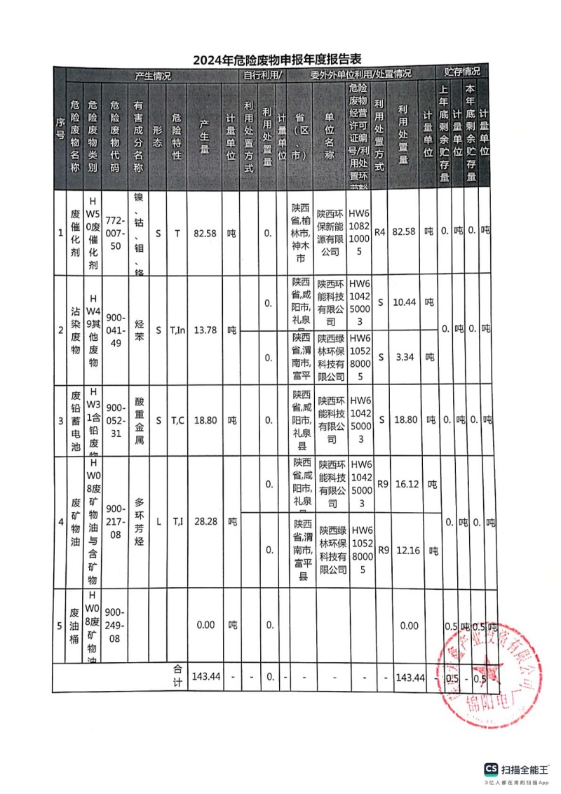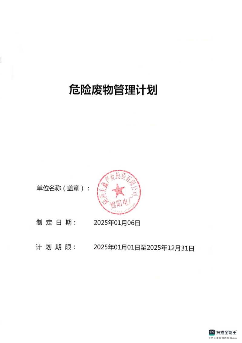 2025年危險(xiǎn)廢物管理計(jì)劃(錦陽(yáng)電廠(chǎng))